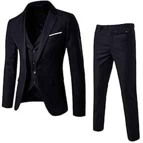 • Men’s 3 Pieces Business Suit 1 Buttons Slim Solid Color Jacket Tuxedo Suits Slim Fit Wedding Formal Blazer Vest Pants