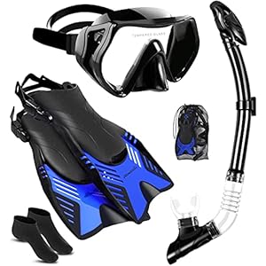 Ninetials 4 in 1 Snorkel Set for Adults with Adjustable Dive Flippers, Panoramic View Anti-Fog Mask, Dry Top Snorkel and Dive Socks, Snorkeling Gear Mask Fin for Snorkeling Swimming Scuba Diving