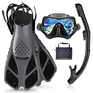 Snorkeling Gear for Adults, Panoramic Snorkling Mask & Foldable Dry Snorkel & Adjustable Fins with Gear Bag, Anti-Fog Anti-Leak Snorkel Gear for Snorkeling Swimming Scuba Diving