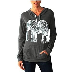 PRIMODA Women Hoodies Elephant Print Long Sleeve Pullover Casual Tops with Pocket