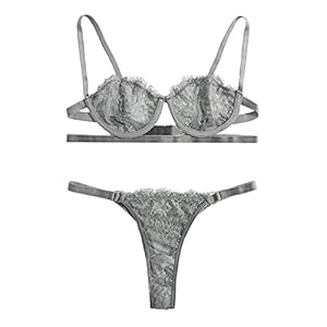 SheIn Women’s 2 Piece Sexy Lace Strap Bralette Bra and Panty Lingerie Set Push Up